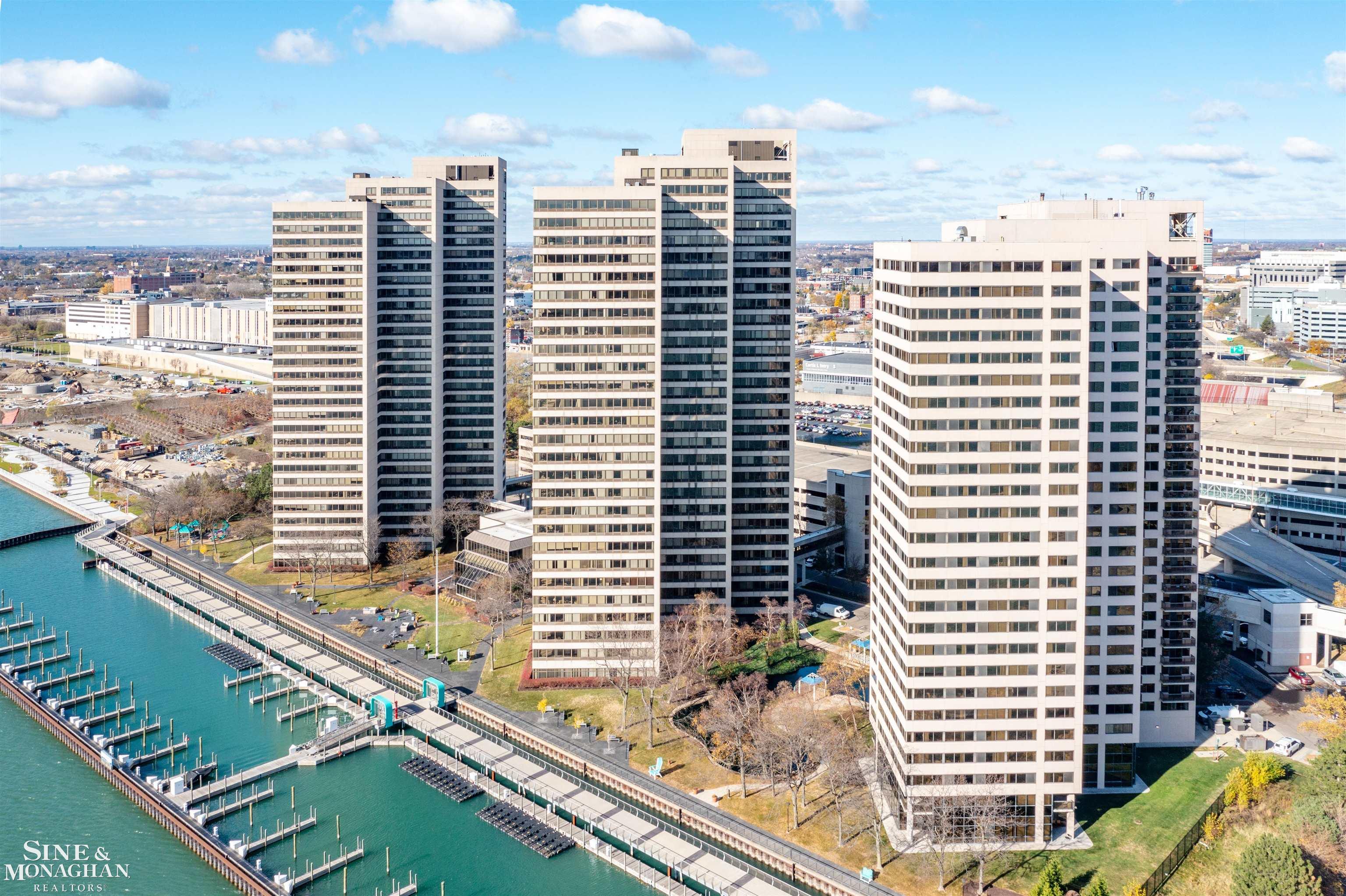 This unit boasts the absolute BEST view in the entire complex! Perched on the 11th floor (11E), you'll feel like you're floating above the clouds with breathtaking panoramic views of the Detroit River, two international crossings—the Ambassador Bridge and the new Gordie Howe International Bridge—as well as the newly completed Ralph C. Wilson Centennial Park. This 22-acre, $80 million development includes a play garden, water garden, and sports pavilion with basketball courts, all visible from your windows. Recently renovated, this unit features brand-new flooring, fresh paint throughout, and a completely updated bathroom. The kitchen is modern and updated as well. Enjoy the peace of mind with 24-hour gated security and direct indoor access to the People Mover via skywalk—convenience and comfort in one unbeatable location. Check out: https://rfcdetroit.com for more info.