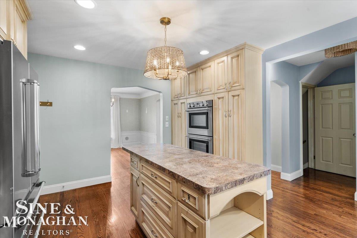 Welcome to 1061 North Oxford in the heart of Grosse Pointe Woods—an exceptional home offering over 4,312 square feet of beautifully designed living space. With 4 bedrooms, 4 full bathrooms, and 1 half bath, this residence blends generous scale with thoughtful functionality throughout. The expansive primary suite is a true retreat, featuring a private balcony and an impressive walk-in closet. A convenient second-floor laundry room adds everyday ease. The updated kitchen is designed for serious cooking and entertaining, complete with dual cooking stations and ample workspace. The kitchen flows seamlessly into a large family room, while a full wet bar perfectly positioned between the formal living room and family room creates an ideal setting for gatherings. A separate window-lined home office provides a bright and private workspace. The home also features a formal dining room, perfect for hosting holidays and special occasions. The partially finished basement offers additional living space along with extensive storage, complemented by extra storage areas on the first floor and second floor. Outside, a beautifully landscaped yard surrounds a brick paver patio—perfect for outdoor entertaining or relaxing evenings. A two-car attached garage completes this impressive offering in one of the Woods’ most desirable locations.