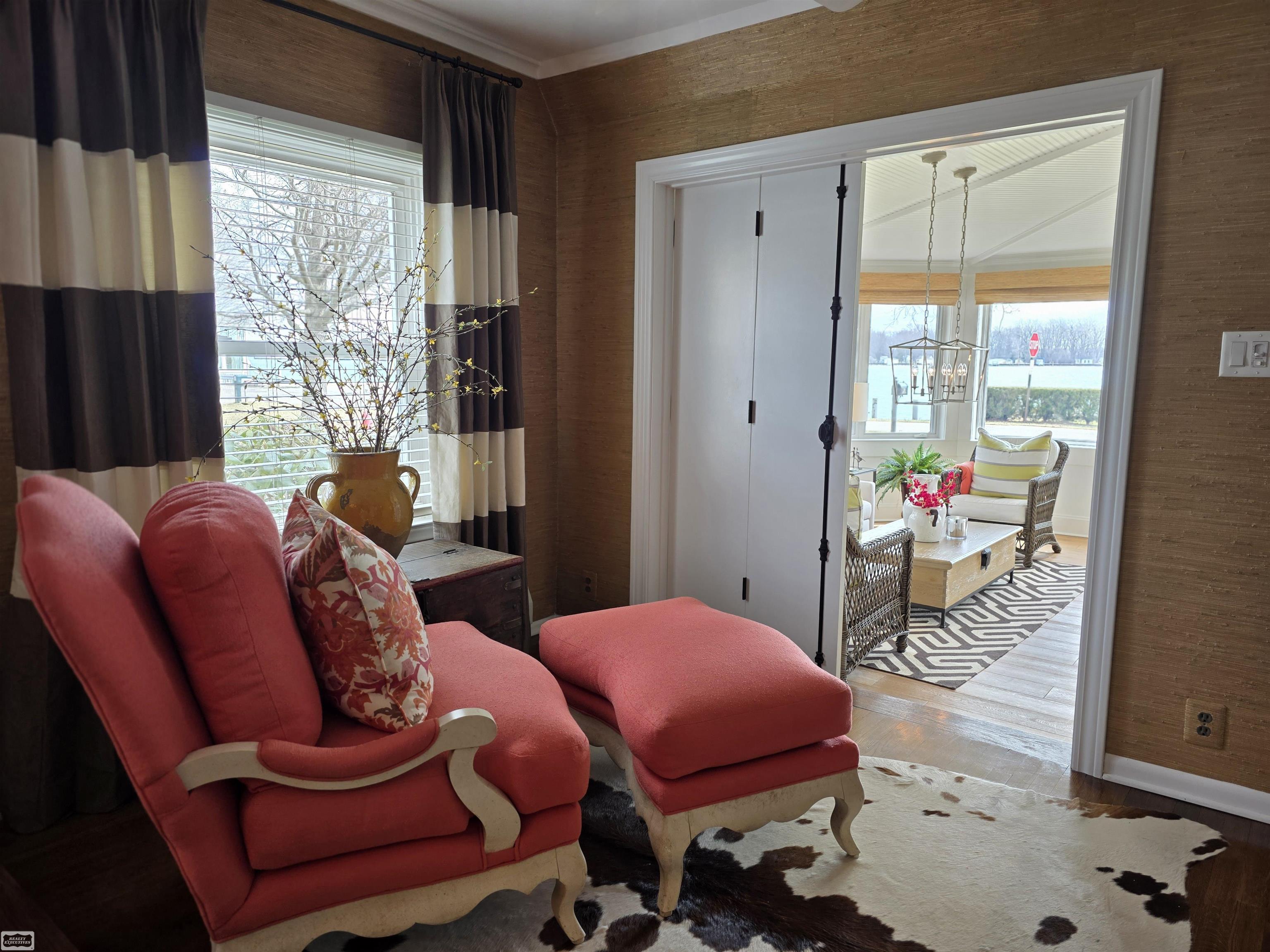 Welcome to a once-in-a-lifetime opportunity in the prestigious waterfront community of Pointe Duchene. This stunning historic home has been completely transformed by a professional interior designer, offering the perfect blend of charm, luxury, and modern comfort. Designed for effortless indoor-outdoor living, the home features a beautifully refinished back porch with exceptional privacy, a stylish seating area, and a cozy firepit—all set on an expansive lot with room to grow. Inside, an open-concept layout leads your eye straight through to 75' feet of private river frontage. The chef’s kitchen impresses with granite countertops, high-end JennAir appliances, and custom cabinetry, while the delightful living and dining spaces provide warmth and versatility. A main-floor primary suite offers convenience and elegance with a spa-like ensuite and laundry. Upstairs, three additional bedrooms boast peaceful water views and another well-appointed full bathroom. The show stopping sunroom spans the width of the home, featuring radiant heated floors, panoramic windows, and inviting seating areas—perfect for year-round relaxation as ships pass through to the South Channel. A gorgeous custom Alder wood front door that leads you to your waterfront oasis complete with newer composite decking, boat hoist, and raised seawall. This exceptional property delivers the ultimate waterfront lifestyle.