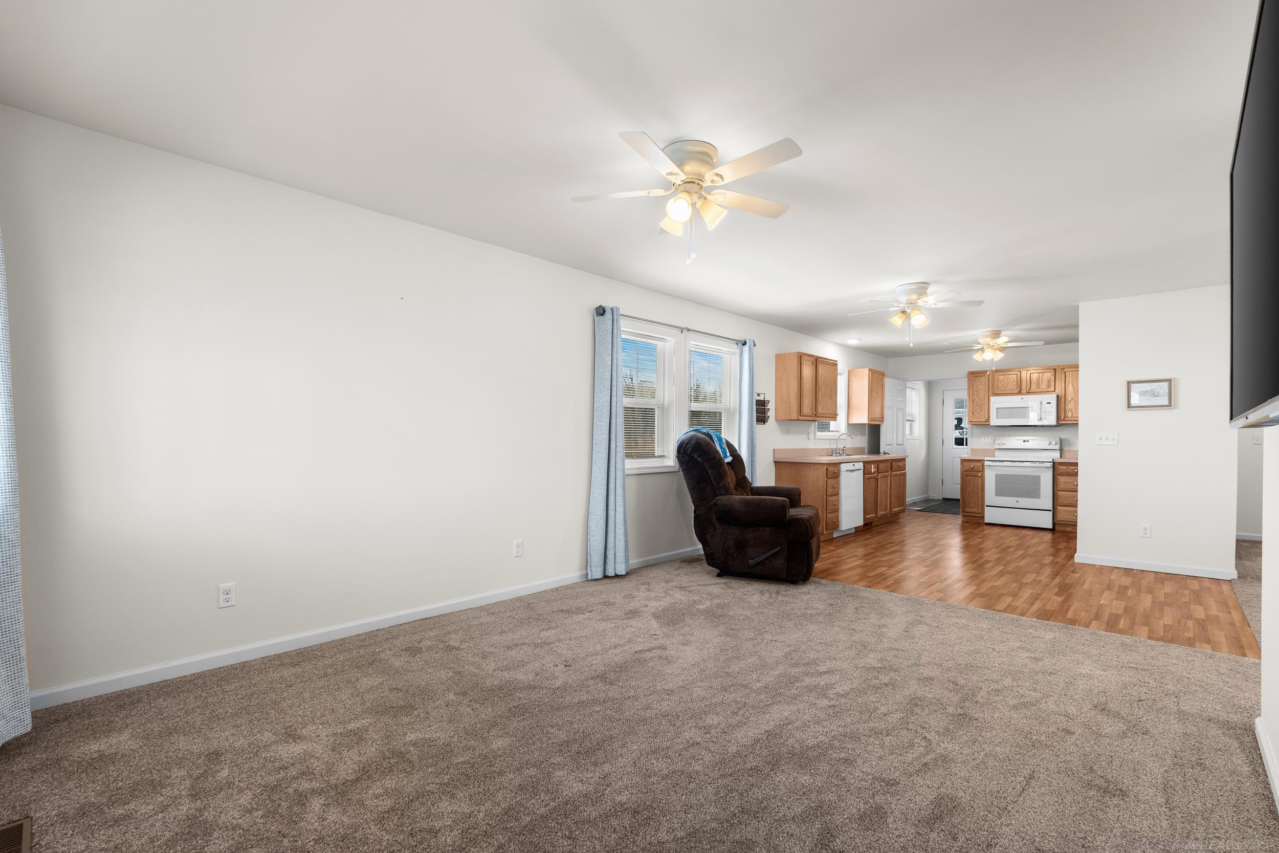 Welcome to this beautifully built 2023 ranch home, offering the perfect blend of modern comfort and move-in-ready convenience. Just 2½ years old and meticulously maintained, this home is in immaculate condition. Inside, you’ll find a bright and inviting layout featuring all new kitchen appliances, along with a new furnace, hot water tank, central air conditioner, and washer and dryer — giving you peace of mind for years to come. The spacious primary suite includes a private full bath with a stand-up shower. All bedrooms are comfortably carpeted, while luxury vinyl flooring flows seamlessly throughout the kitchen, bathrooms, and laundry room for both durability and style. Step outside and enjoy the thoughtfully designed outdoor spaces. A 12' x 6' covered front porch provides the perfect spot to relax and unwind on warm summer evenings. Right out the back door, the 12' x 12' covered concrete patio is ideal for grilling, entertaining, and enjoying weekends in your backyard. Car enthusiasts, hobbyists, or anyone needing extra storage will love the impressive 37' x 26' pole barn, complete with a wood burner, electricity, and convenient front and rear pass-through garage doors—allowing you to drive straight through to the extended backyard. The property also features a long driveway accommodating four to five vehicles, plus an additional 16' x 8' shed located behind the pole barn for even more storage. This nearly new ranch truly checks all the boxes — modern systems, exceptional outdoor space, and room for all your toys.