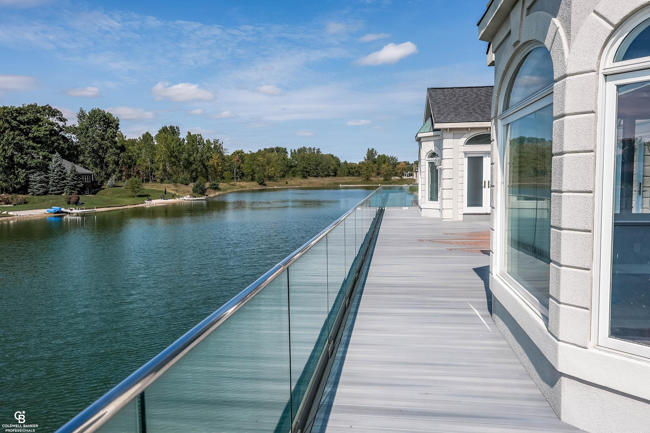 Beautiful contemporary home on Lake Angela - breathtaking views - a chef's kitchen with granite counters, gas fireplace, double ovens, built-in cook top, microwave, sub zero refrigerator, multiple prep areas, dishwasher, deep fryer, cabinets have Swarovski crystal knobs, office off of kitchen overlooking water - great room opens to 1,000+ square foot deck with inlay design - primary bedroom has gas fireplace, beautiful views, access to deck and 2 walk in closets, one has a cedar closet within - primary bath has double sinks, walk in shower, private toilet & bidet - second bath has double sinks - first floor laundry has sink, dog wash and built in ironing board - lower level has 3 door walls to 1,900+ square foot deck built over the lake plus large cedar closet, tornado shelter, 2 furnaces, 2 hot water heaters, a room prepped for bath - heated 3 car garage - circle drive - association fee covers maintenance of streets, lake and common areas