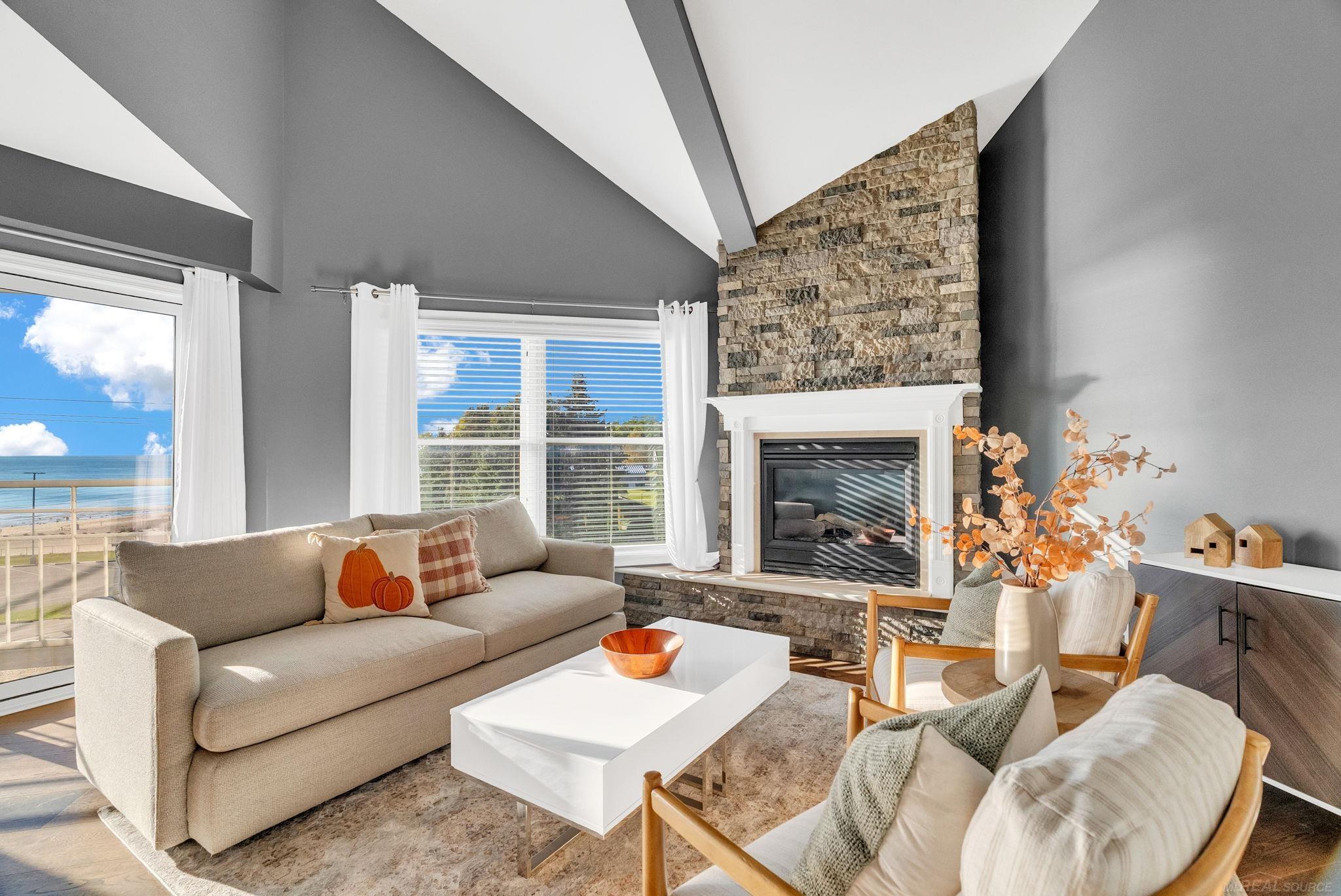 Experience elevated living in this stunning 3-bedroom, 3-bath condo perched on the top floor, offering panoramic views that will take your breath away. Step inside to find an open-concept living space filled with natural light, high ceilings, and stylish finishes throughout. This condo is TURN KEY with high end interior furnishings. The kitchen features Cambria quartz countertops and newer appliances. The main floor boasts one Master suite, a second bedroom, full bath, and laundry room. The upper level features a great room with a wet bar, bedroom and full bathroom. The living and dining areas flow seamlessly to a private balcony—ideal for morning coffee or viewing the freighters on Lake Huron. Located in a desirable community close to shopping, dining, and recreation, this condo combines comfort, convenience, and unbeatable views.