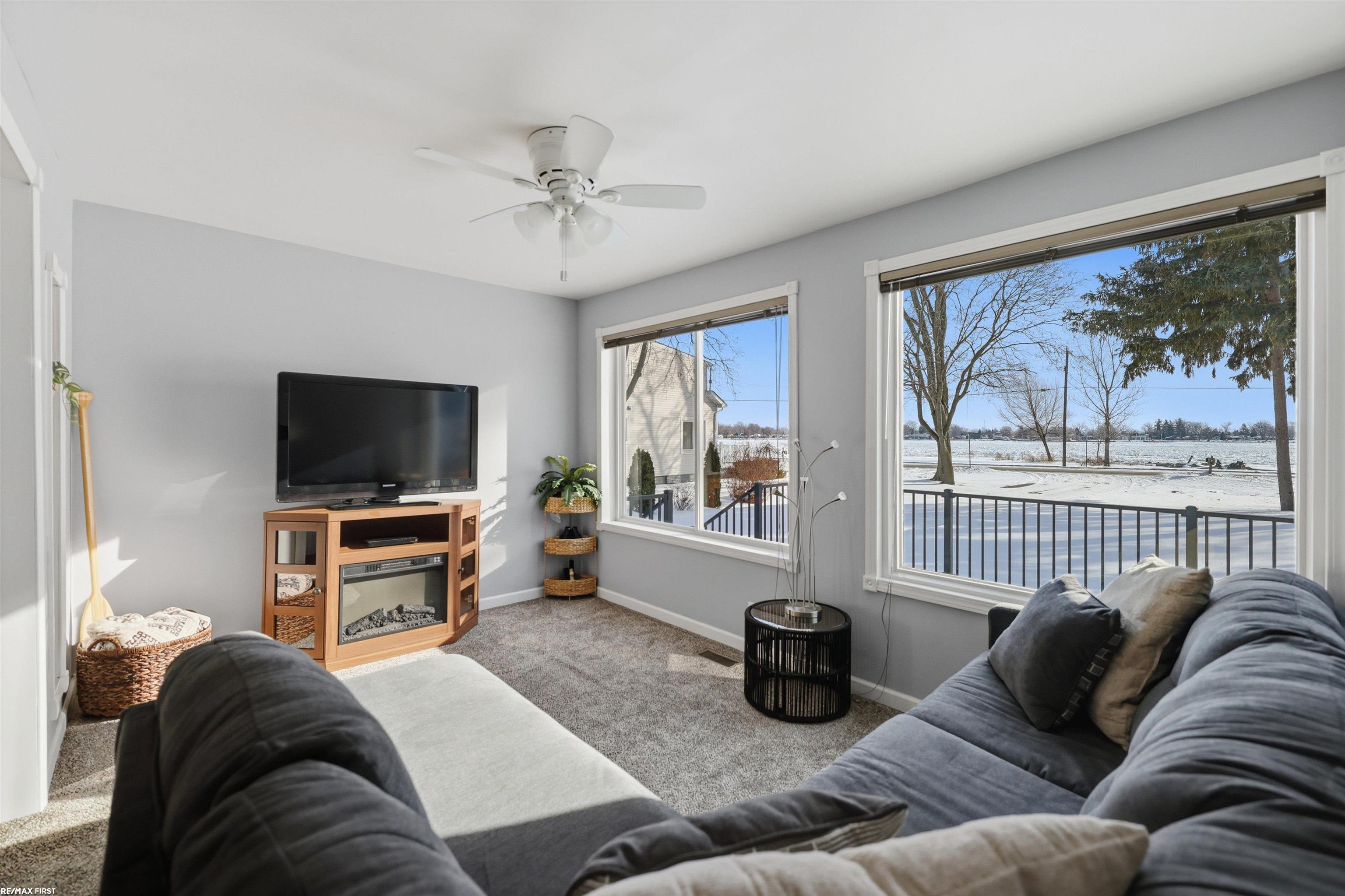 Land contract terms!! Waterfront living in this updated 4 bedroom home along the stunning St. Clair River. Step inside to an open-concept kitchen featuring stainless steel appliances, barstool seating, and a seamless flow into the bright and airy great room. Large windows fill the space with natural light and showcase captivating river views, creating a warm and inviting atmosphere. A spacious first floor bedroom and convenient laundry add practicality, while upstairs you’ll find three additional bedrooms and a full bath. The attached two-car garage offers plenty of storage space. Relax on the porch and take in Michigan’s finest sunrises and sunsets, or enjoy endless water activities such as fishing, boating, and peaceful walks along nearby paths and parks. Cottrellville Township Shoreline Park is just across the street, providing direct access to the river. Recent updates since 2023 include new siding, gutters, driveway, Trex-style deck, high-efficiency 90+ furnace, and more—making this home move-in ready and worry free. Conveniently located near restaurants, shops, and recreational spots, this riverfront gem perfectly blends comfort, style, and location. *Furniture included, making for a great starter home/cottage or Airbnb/VRBO opportunity!*